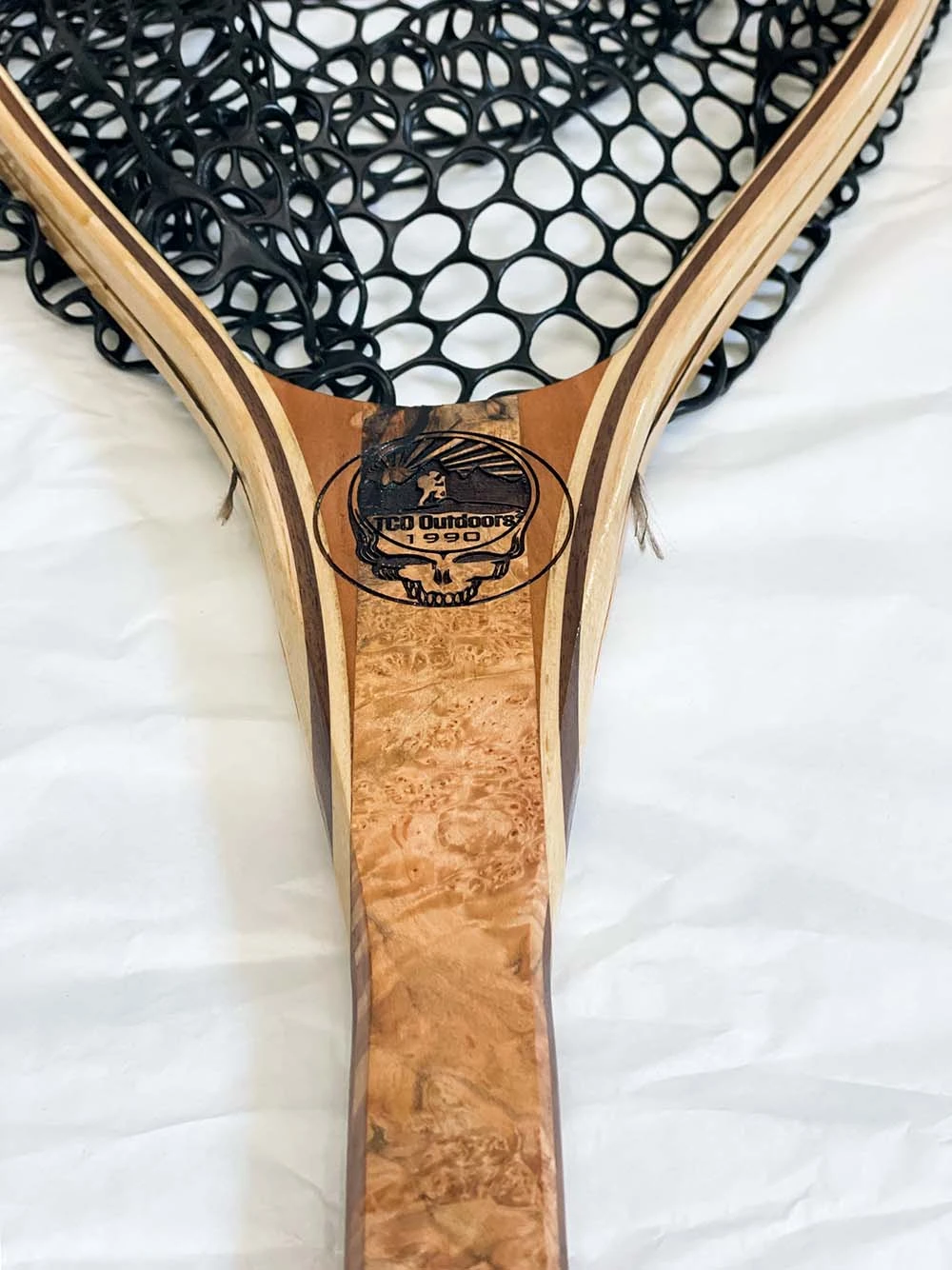 TCO Fly Shop partnered with Wayward Trading Post to create handmade, one-of-a-kind, wooden nets featuring TCO’s Steal Your Face logo meticulously etched. Each net is unique and has a different variation of the wood grain. Â