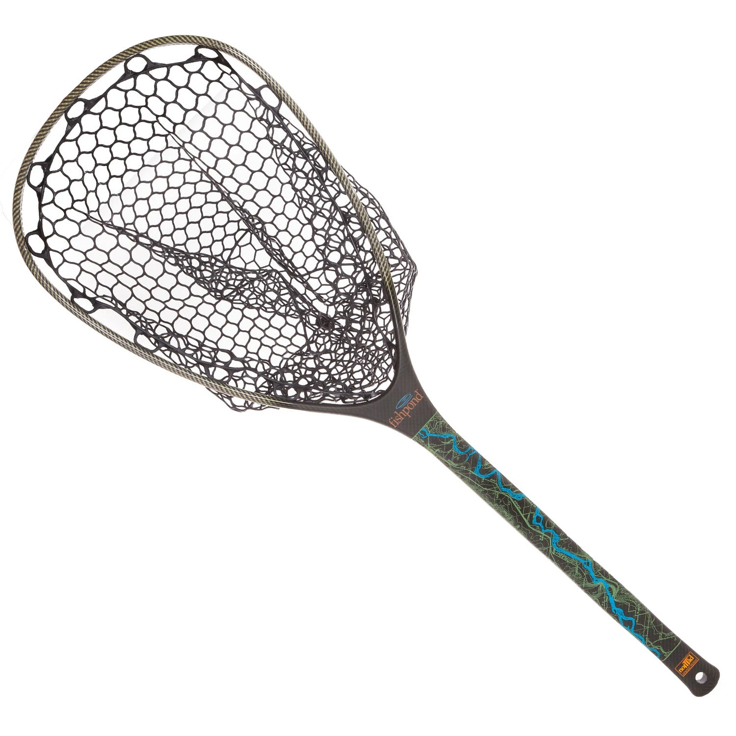 Nomad River Armor edition nets are constructed with a core of carbon fiber and fiberglass, and an outer layer of woven DuPontTM Kevlar® fiber and carbon fiber. The result is an extremely strong net with enhanced durability. This composition was designed with the boulder-hopping bushwhackers in mind.