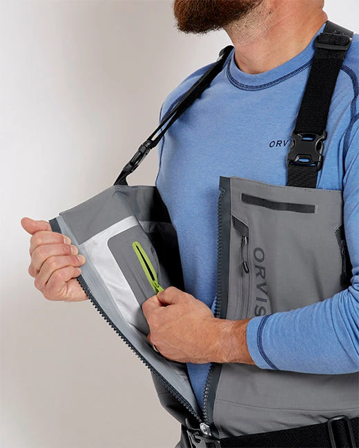 For convenience, comfort, and quick on-and-off, nothing compares to a these zippered PRO fly-fishing waders for men. The convenience issues are obvious, but the wader has to be of the highest quality construction to provide confidence in performance. The PRO Wader is the most durable, abrasion-resistant, and feature-rich wader we’ve ever built. Built with exclusive 100% CORDURA® fabric with four layers in the upper and five layers in the lower, the addition of a TIZIP® Masterseal waterproof zipper tested for more than 200 days, provides a remarkable level of combined convenience and performance. In the upper are split fleece-lined handwarmer pockets, two external storage pockets with YKK AquaGuard® coated zippers, and split Hypalon daisy chain for tool docking. Inside are two internal storage pockets for fly boxes and accessories. Adjustable elastic suspenders with opposing buckles for waist-high conversion. The five-layer lower incorporates removable OrthoLite® X25 knee pads, PU cage mesh gravel guards to eliminate drag and water collection, and anatomically correct neoprene booties. Athletic Fit. In shadow. Wader weighs approximately 52 oz. (medium regular). 100% nylon shell with polyurethane membrane. 100% nylon tricot liner. Imported.