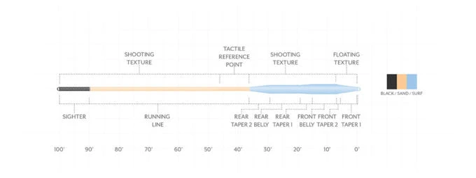 - High-contrast sighter to identify the back of the line when fighting fish on long runs